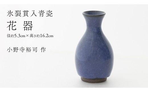 NEW 【氷裂貫入瑠璃青瓷】花器 (小野寺裕司 作) 径5.3cm×高さ16.2…