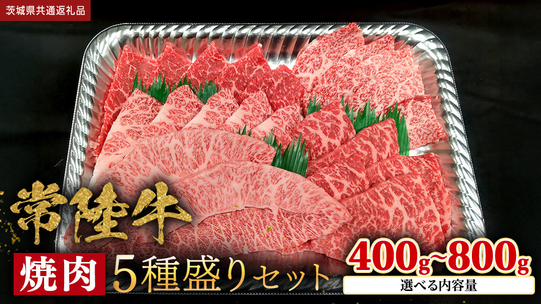 チョイスPayポイントと交換できる品 人気部位はもちろん、思いがけずめったに出回らない希少部位に出会えるかも…! \選べる内容量/【 常陸牛 】 焼肉 5種盛りセット400g(各種 約80g) / 400g(各種 約80g)×2パック(計800g) (茨城県共通返礼品) 黒毛和牛 厳選部位 焼肉食べ比べ ひたちぎゅう 和牛 国産牛 ミスジ イチボ ササミ ザブトン シンシン カイノミ ボンジョー タテバラ 三角バラ サイコロステーキ サーロイン リブロース ランプ ウワミスジ ヒレから おススメ セレクト