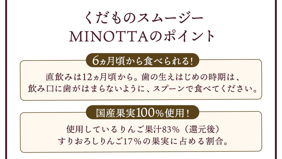 6ヵ月頃から。厳選した国産くだものでつくった赤ちゃんのためのスムージー。
