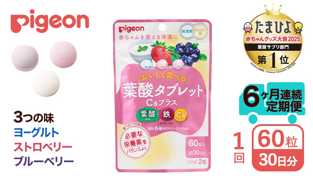 チョイスPayポイントと交換できる品 【 ピジョン 】 < 6か月連続 定期便 > 葉酸タブレットCaプラス ヨーグルト・ストロベリー・ブルーベリー 妊娠 妊娠中 妊婦 マタニティ マタニティー 妊活 レディース 葉酸 葉酸サプリ サプリ サプリメント 栄養補助食品 鉄 鉄分 カルシウム 出産準備 健康 葉酸サプリメント 錠剤 ビタミン 亜鉛