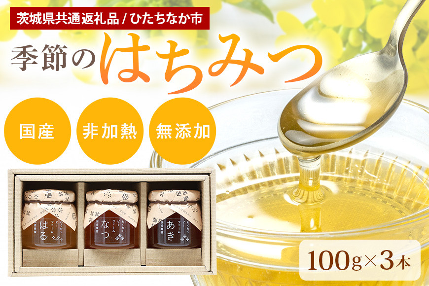 百花蜜 食べ比べ 食べくらべ 詰め合わせ 季節のはちみつ 3本セット(春・夏・秋) (茨城県共通返礼品 / ひたちなか市) 蜂蜜 ハチミツ 国産 非加熱 生はちみつ ギフト 60-A