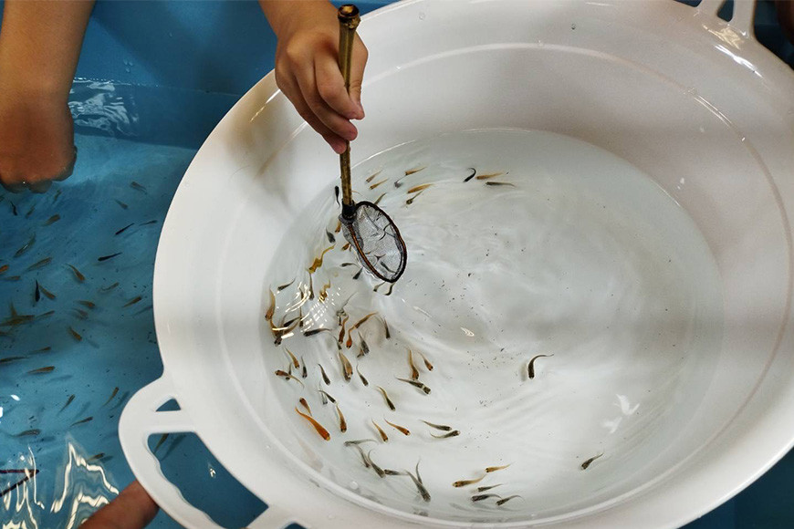 持ち手には天然素材の竹を使用。竹の持ち手は、手にしっくりと馴染む自然な感触があり、滑りにくくしっかりとしたグリップ感を提供します。非常に軽量で、タモ網全体の重量を軽減し、長時間の使用でも疲れにくくなっています。軽量なため素早い操作が可能で、メダカを逃さずキャッチすることができます。天然の木目が見えることで一つひとつ異なる表情を持ち、世界に一つだけの特別なアイテムになります。