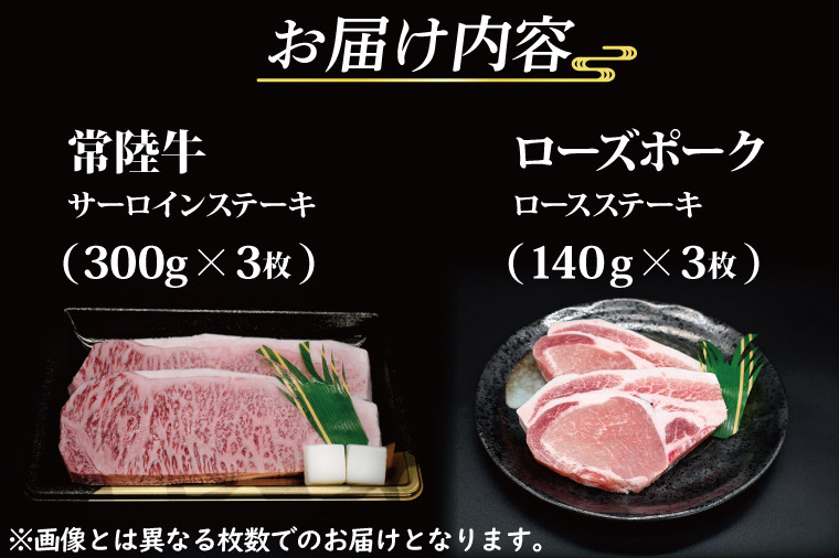 茨城県が誇る銘柄牛・銘柄豚「常陸牛・ローズポーク」ステーキセット 常陸牛 サーロインステーキ 約300g×3枚 ローズポーク ロースステーキ 約140g×3枚