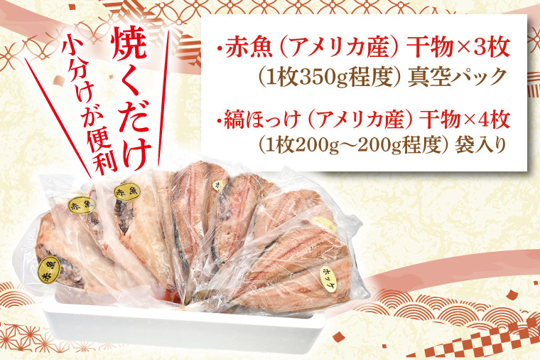 「焼くだけ」「小分け」が便利!赤魚の干物 干物 食べ比べ セット ( 赤魚 3枚 縞ほっけ 4枚 計7枚 ) 小分け 真空パック 袋入り あかうお しまほっけ ひもの 開き 大洗町 大洗 魚 さかな 魚介類 冷凍