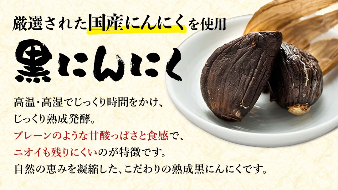乾燥したにんにくを高温、高湿度の状態で時間をかけて熟成すると、