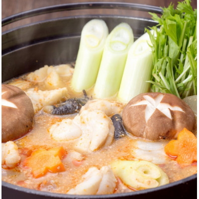 あんこうの味が凝縮された味噌ベースのスープは濃厚な味わいで、秘伝の味噌を使うことで、どぶ汁の濃厚さと鍋の食べやすさの両方を取り入れた「あんこう鍋」です。