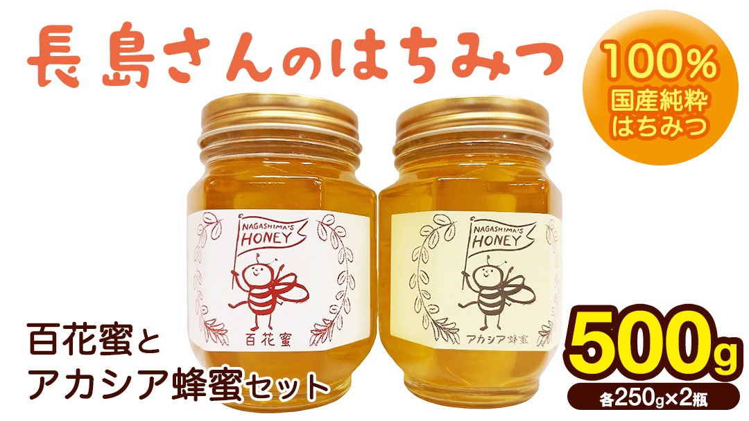 城里町で採れた国産はちみつ 長島さんのはちみつ 百花蜜 と アカシア蜜 2本 各250g ハチミツ 国産蜂蜜 国産純粋はちみつ 蜂蜜 はちみつ ハニー honey 純粋はちみつ 常温 保存 備蓄 防災食 非常食 保存食 産地直送 茨城県 城里町 (BG015)