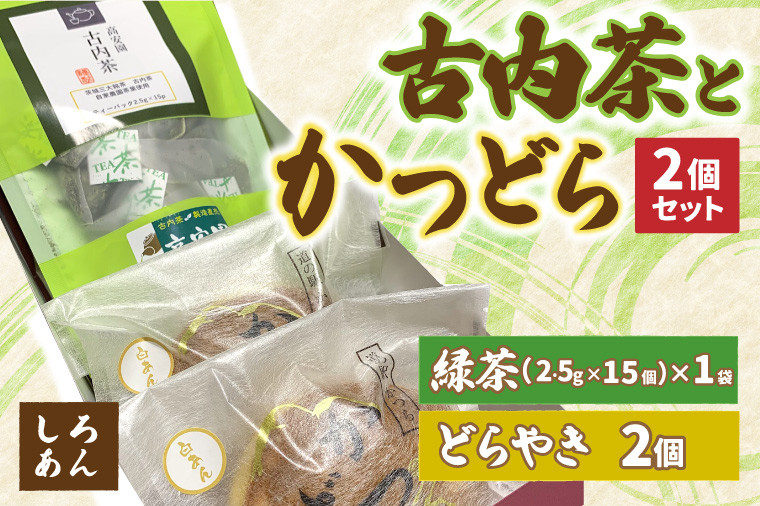 茨城三大銘茶のひとつ「古内茶」と、昔懐かしいどらやきのセット。 古内茶とかつどら2個セット【白あん】 (AF034)