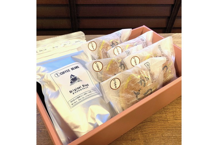 MERCY's COFFEEのオリジナルブレンドと昔懐かしいどらやきのセット。 珈琲豆とかつどら5個【つぶあん】 (AF068)