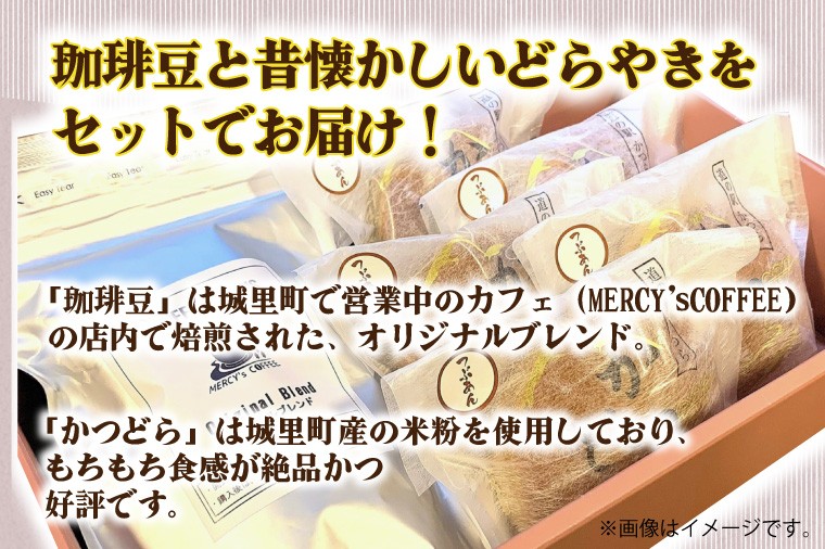 MERCY's COFFEEのオリジナルブレンドと昔懐かしいどらやきのセット。 珈琲豆とかつどら5個セット【あんバター】 (AF071)