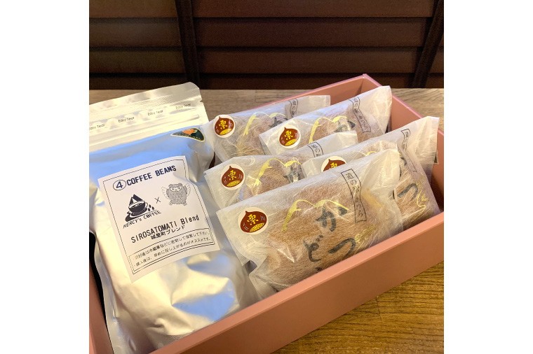 MERCY's COFFEEのオリジナルブレンドと昔懐かしいどらやきのセット。 珈琲豆とかつどら5個【城里町ブレンド/栗】(AF080)