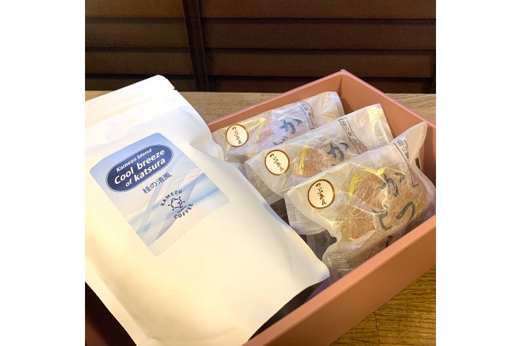 同じ城里町で営業中の亀蔵珈琲焙煎所オリジナルブレンド、深みのあるコクと甘みが特徴の“桂の清風”と、かつどら(つぶあん)をセットでお届けします。