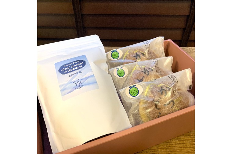 同じ城里町で営業中の亀蔵珈琲焙煎所オリジナルブレンド、深みのあるコクと甘みが特徴の“桂の清風”と、かつどら(季節の果物)をセットでお届けします。