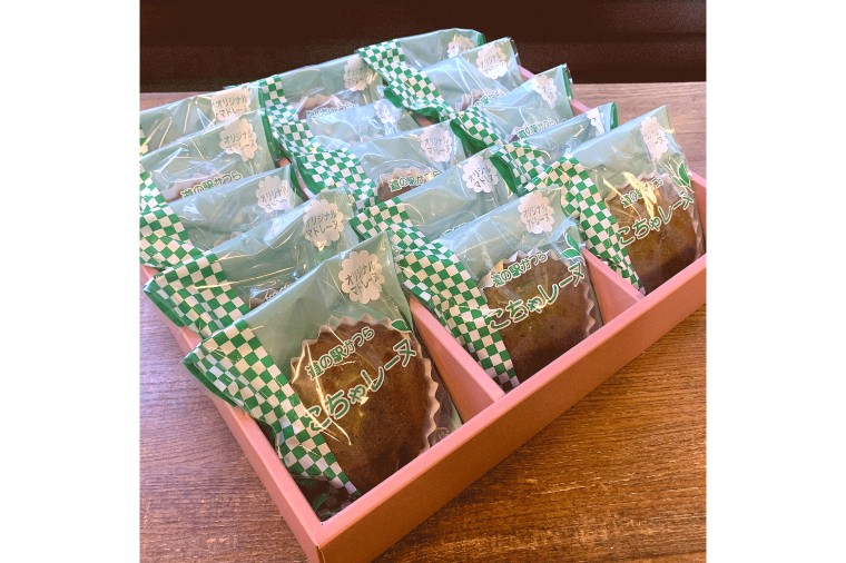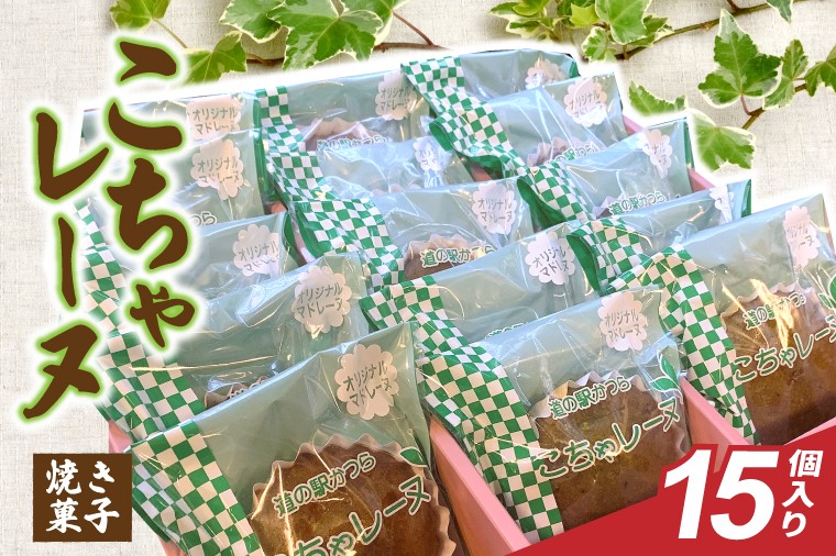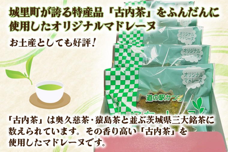 道の駅かつらにて製造・取扱中。古内茶を使用した香り高いマドレーヌ。 こちゃレーヌ15個入り (AF098)
