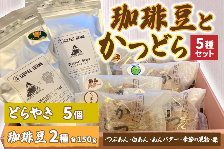 MERCY's COFFEEのオリジナルブレンドと昔懐かしいどらやき5種のセット 珈琲豆2種とかつどら5種【オリジナルブレンド/城里町ブレンド】(AF106)