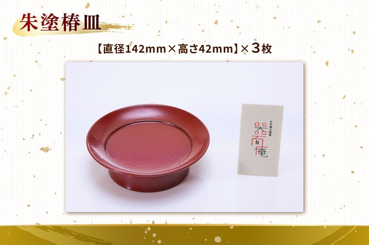・朱塗椿皿(3枚):直径142㎜×高さ42㎜