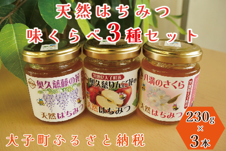 【2025年10月~2026年4月発送】天然はちみつ 味くらべ3種セット 230g×3本 【藤の花・りんご花・さくら】|茨城県 大子町 奥久慈 ハチミツ 蜂蜜 プレゼント 包装(BG005)