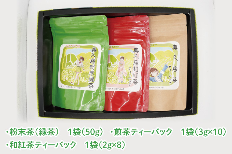 農林水産大臣賞を受賞 北限の茶産地 奥久慈の自然が育てた美味しいお茶 【農林水産大臣賞受賞】かねた園の奥久慈茶&和紅茶のティーバッグ・粉末緑茶セット(茨ひよりパッケージ)(CK001)
