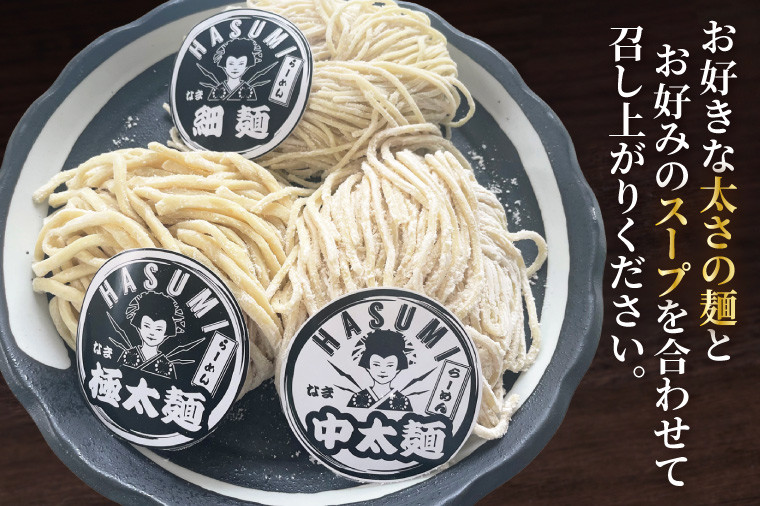 創業明治35年蓮実麺業のイチニンメン「細麺・中太麺・極太麺」の食べ比べセットになります。