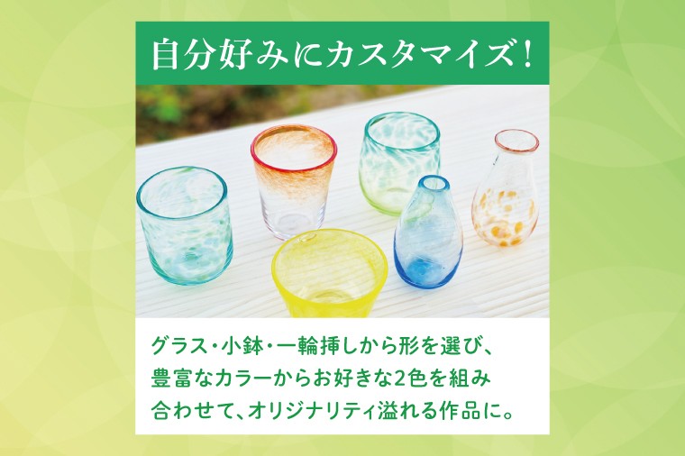 グラス・小鉢・一輪挿しから形を選び、豊富なカラーからお好きな2色を組み合わせて、オリジナリティ溢れる作品に。