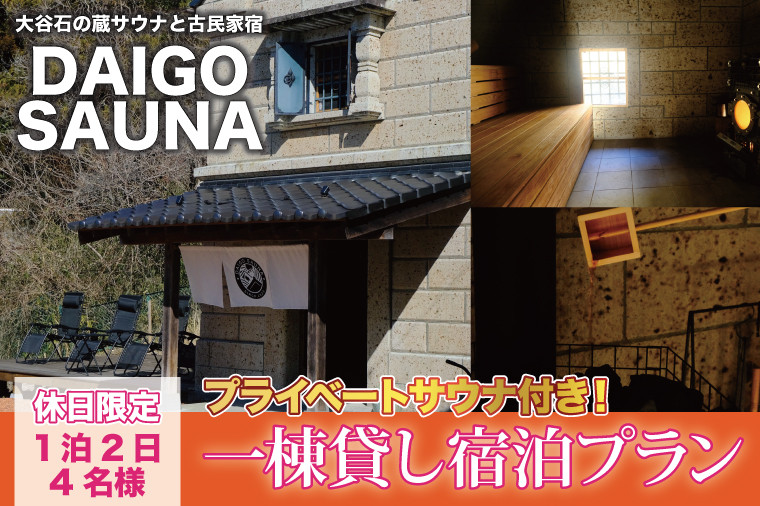 | 容量 | 大谷石の蔵サウナと古民家宿 DAIGO SAUNA ・プライベートサウナ付き一棟貸し宿泊プラン【休日限定:4名様】1泊2日 素泊まり |
