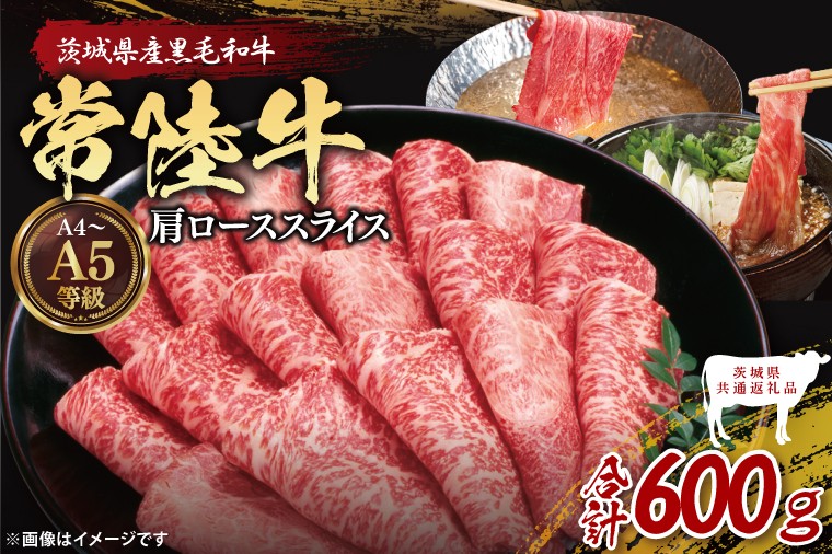 茨城県が誇る銘柄牛【常陸牛】の肩ローススライスを約600gお届け! 【茨城県共通返礼品】常陸牛肩ローススライス600g【茨城県共通返礼品】|ブランド牛 銘柄牛 和牛 黒毛和牛 国産 A5・A4ランク 等級 お肉 牛肉 スライス 肩ロース 茨城県 大子町(DD003)