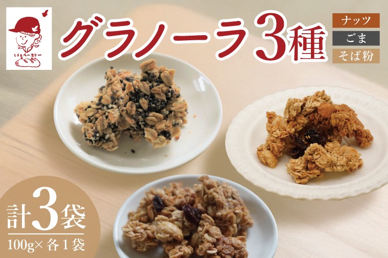 美味しくて、毎日食べたくなる、ミチルベーカリー特製「グラノーラ」 グラノーラ3種【ナッツ・ごま・そば粉】100g×各1袋 計3袋セット|ミチルベーカリー 茨城県 大子町 手作り お菓子 おやつ グラノラ 食べ比べ 小分け ジッパー付き プレゼント ギフト 贈答(CF004)