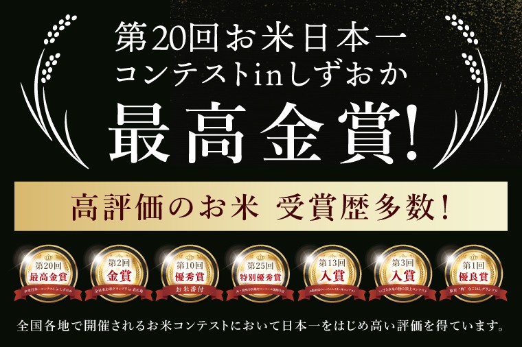 全国の主要なお米コンテストにおいて最高位受賞するなど高い評価を得ています