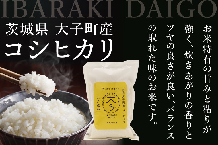 地元生産者さんが丹精込めて作った大子町産のお米です! コシヒカリはお米特有の甘みと粘りが強く、炊きあがりの香りとツヤの良さが良い、バランスの取れた味のお米です。 大子町のコシヒカリは他地域と比べて、粒が大きいので口に入れたときの食感の良さと噛んだときに広がる強いうま味と飲み込んだ後に残る甘みがコンテストにおいては評価されています。粒が大きく粘りも強いので、冷めても美味しく召し上がれるのも大子町のコシヒカリの特徴です。 【大子町産米の特徴】 ミネラル豊富な八溝山湧水の清流や山林を吹き抜ける澄んだ空気、昼夜の寒暖差により稲自身が養分と旨味をたっぷりと蓄えられる環境で栽培され、他の地域と比べ米の粒が大きくて食感が良く旨味が強いお米です。 大子町で育てられたコシヒカリは令和4年全日本お米グランプリin北広島町においてグランプリ(日本一)をはじめ、全国の主要なお米コンテストで3度日本一を受賞するなど高い評価を得ています。 ●返礼品について 【原産地】 茨城県大子町 【保存方法】 直射日光・高温多湿を避け、密封した容器に移し替え15℃以下の冷暗所にて保管してください。(冷蔵庫での保管をおすすめしています。) 特に気温が高い夏場は、虫が発生しやすいのでご注意ください。 【注意事項】 ※画像はイメージです。 ※お米は生鮮食品です。ご到着後はお早めにお召し上がりください。 ※お米が到着したら、必ず箱を開けて中身を確認してください。 ※直射日光・高温多湿を避けて、保管してください。 ※虫やカビが発生したことによる返品・交換はお受けしておりません。 ※万全を期してお礼の品をお届けしておりますが、万が一不備等があった場合は、受け取り時の写真(画像)を添付のうえ、電子メールにてご連絡ください。到着後7日以内にご連絡をいただいた場合のみ対応させていただきます。 ※天候や発育、精米所の都合によりお届けが遅くれることがあります。