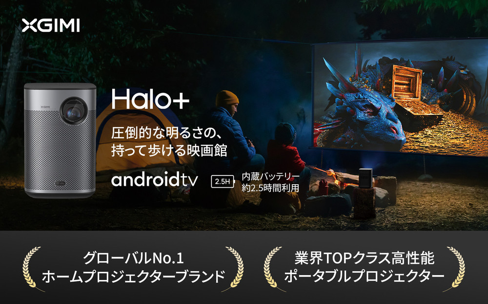 Halo+は、ポータブルプロジェクターの中でトップクラスに明るいプロジェクター。ご自宅でもキャンプなどの屋外でも、映画館のような映像体験をどこでも手軽に楽しめます。