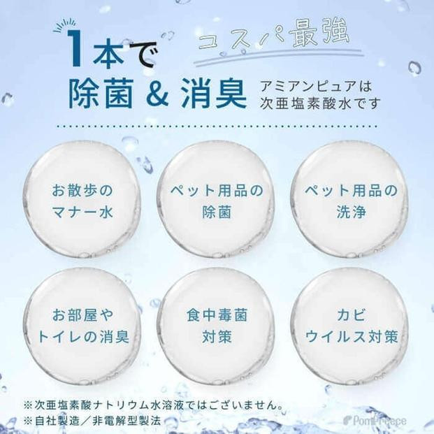 ・一度除菌や消臭を完了した「次亜塩素酸水(アミアンピュア除菌水)」の再利用はできません。