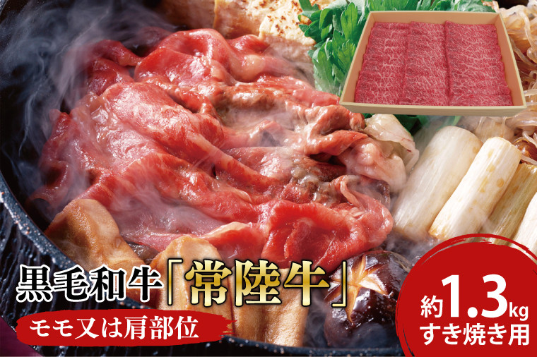 茨城県が誇る銘柄黒毛和牛「常陸牛(ひたちぎゅう)」のモモ又は肩部位をすき焼き用として約1.3kgに梱包してお届けします。