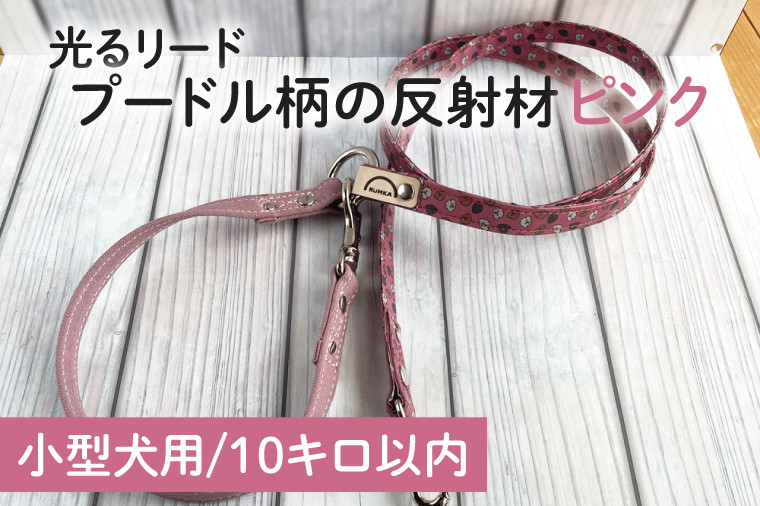 『プードル柄 (ピンク)』光る反射材 犬用リード【小型犬10kg用…