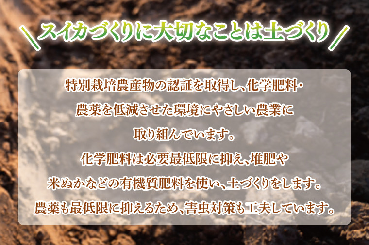 『スイカづくりに大切なことは土づくり』『シャリ感と甘さが自慢』