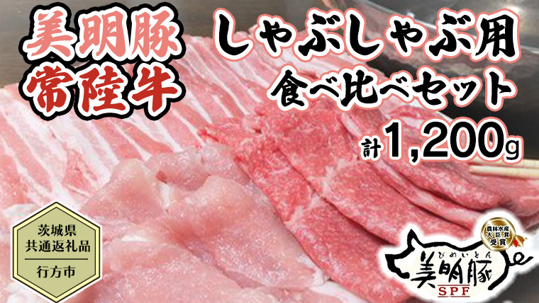行方産ブランド豚『美明豚』と茨城の誇る銘柄牛『常陸牛』を贅沢に食べ比べ! 【茨城県共通返礼品/行方市】 美明豚 × 常陸牛 しゃぶしゃぶ用 食べ比べセット 約1,200g 豚肉 牛肉 豚 牛 ひたち牛 SPF ブランド牛 ブランド豚 詰め合わせ 食べ比べ セット 贈答用 国産 黒毛和牛 最高級 モモ肉 もも バラ しゃぶしゃぶ[CF003ya]