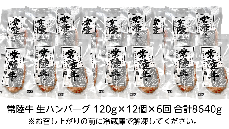 ★6ヶ月連続でお届け★ 【茨城県共通返礼品】【6ヶ月定期便】 黒毛和牛 常陸牛 100% 特製 プレミアム 生ハンバーグ 120g×12個入り 合計1,440g 八千代町産 白菜 使用 無添加 無着色 保存料不使用 冷凍 牛 牛肉 ビーフ 生 ハンバーグ こだわり [AU057ya]