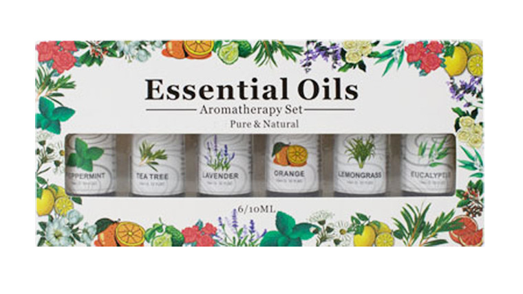 | 容量 | ・60ml(10ml×6本) (ペパーミント、ティーツリー、ラベンダー、スイートオレンジ、レモングラス、ユーカリ 各10ml×1本) |