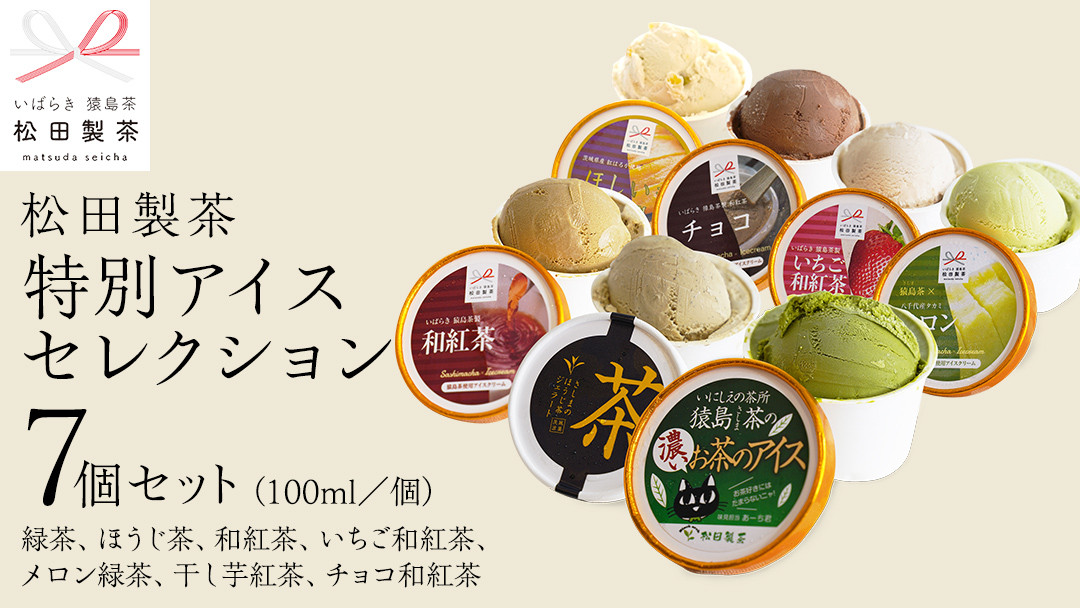 松田製茶特別アイスセレクション 7個セット 松田製茶特別アイスセレクション (緑茶、ほうじ茶、和紅茶、いちご和紅茶、 猿島茶入りタカミメロンアイス 、 干し芋アイス 、チョコ和紅茶)7個セット 猿島茶 さしま茶 アイス スイーツ デザート お茶 詰め合わせ 詰合せ ふるさと納税 11000円 食べ比べ [AF147ya]