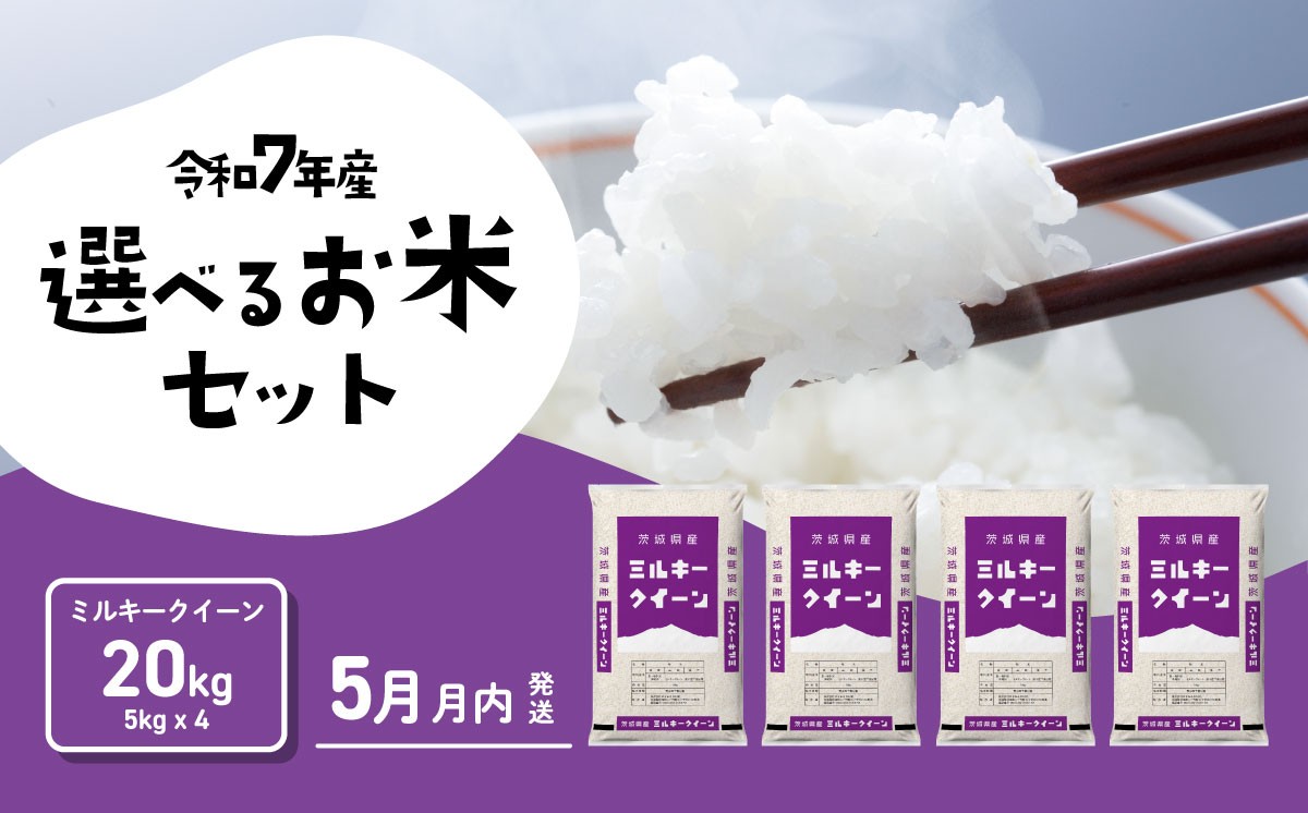 令和7年産 ミルキークイーン20kg(5kgx4)。米どころ茨城のお米です! 【05月月内発送】ミルキークイーン 20kg 令和7年産 茨城県産 白米 精米 茨城県 お米 米 [RA029yai]