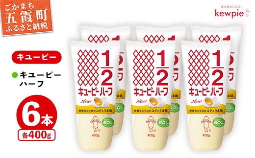 キユーピーハーフ400gを6本お届けします。 キユーピーハーフをご堪能ください! 【キユーピーハーフ】 卵黄のコクとうま味を味わえる、カロリー50%カットのマヨネーズタイプ調味料です。(キユーピー株式会社マヨネーズ比) ■生産者の声 【キユーピー株式会社 五霞工場】 日本で初めてマヨネーズを製造・販売したのがキユーピーです(※)。 キユーピー五霞工場は、全国のキユーピー工場の中でも五霞工場が一番大きく、工場見学も実施しています。 徹底した管理のもと、安全・安心、おいしさを追求した食品づくりに励んでいます。 ※日本食糧新聞より 【ご注意ください】 ・開封前は直射日光を避け、なるべく涼しい場所に保存してください。 ・開栓後は要冷蔵(1℃~10℃)で保存し、1ヵ月を目安に召しあがってください。 ・0℃以下になりますと分離することがありますので、冷気の吹き出し口などは避けてください。 ・卵は低温殺菌していますが、アレルゲン性は生卵と同等とお考えください。 ・パッケージ・原材料が予告なく一部変更になる可能性がございます。 ・旧デザインのパッケージと混合する場合がございます。あらかじめご了承ください。 マヨネーズ 調味料 コク カロリーオフ セット 安心 安全 キユーピー 茨城県 五霞町