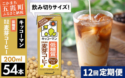 五霞町のキッコーマン豆乳飲料はバリエーションが豊富! 【定期便12回】【合計200ml×54本】低糖質 豆乳飲料麦芽コーヒー 200ml / 飲料 キッコーマン 健康 麦芽 コーヒー 豆乳飲料 大豆 パック セット 飲み切り 低糖質 定期便 茨城県 五霞町