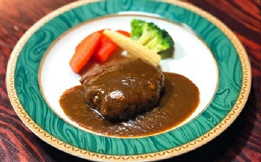 1975年創業老舗洋食店の煮込み手ごねハンバーグ3個と常陸⽜のビーフシチュー3個セット。