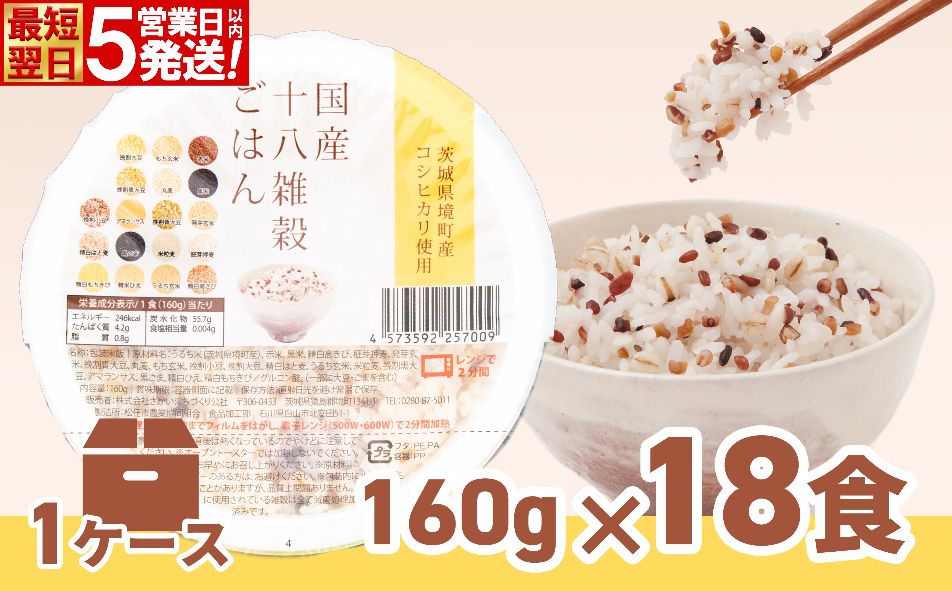 電子レンジで2分!圧力釜と同じ製法でふっくらおいしい雑穀ごはんをお手軽にご提供! K1940 境町産こしひかり使用 国産十八雑穀ごはん ヘルシー パックライス 160g×18個