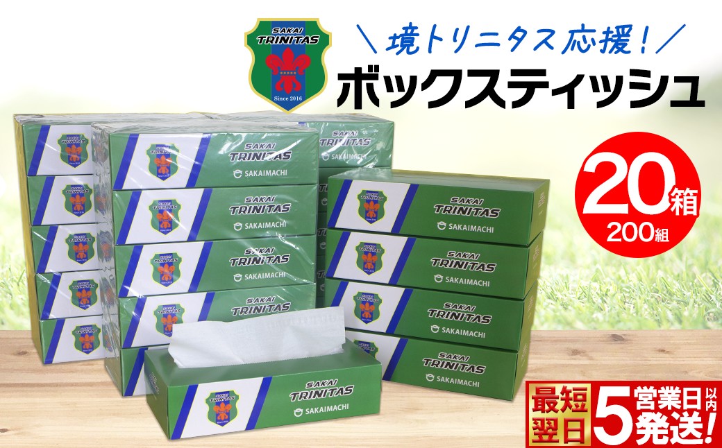 境トリニタス応援ボックスティッシュ 400枚(200組) × 20箱 日用品 防災 消耗品 必需品 花粉 風邪 ティッシュ ボックス ボックスティッシュ K2603