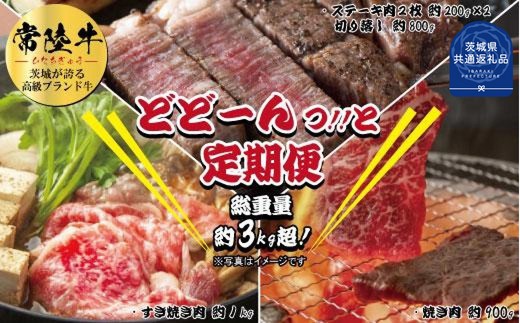 【3ヶ月定期便】常陸牛どどーんっ!と定期便(総重量約3kg超え…