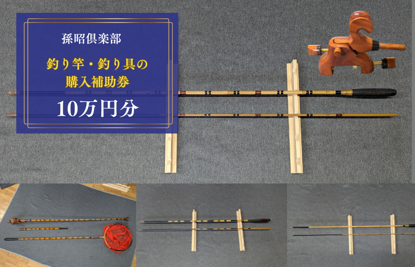 お好きな釣具購入に使える補助券! 孫昭倶楽部 釣り竿・釣り具の購入補助券 10万円分 / 釣り具 釣具 釣り竿 釣竿 へら竿 竿受 玉の柄 万力 浮子入れ ハリス掛け 合成竿