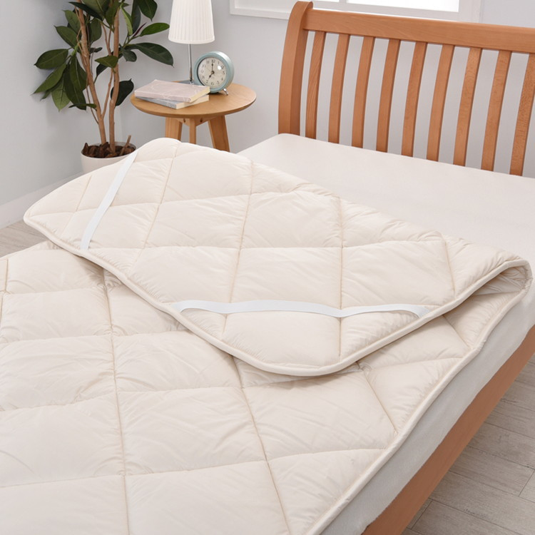 ベッドの寝心地を左右するベッドパッド。暖かさや湿気を調整し、より快適な寝心地を実現します。ウールには、快適な睡眠環境を整える優れた保温・保湿機能が備わっています。ウール繊維特有の縮れは、優れた弾力性、吸湿性をもつ繊維で寝ている間にかく汗を効率よく吸収・発散します。