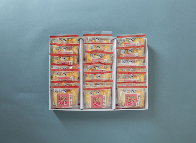 昔ながらの製法で全て手作業で一つ一つ丁寧に焼き上げ、愛情を込めて作られたせんべいは、家族や友人とのお茶の時間にも最適です。