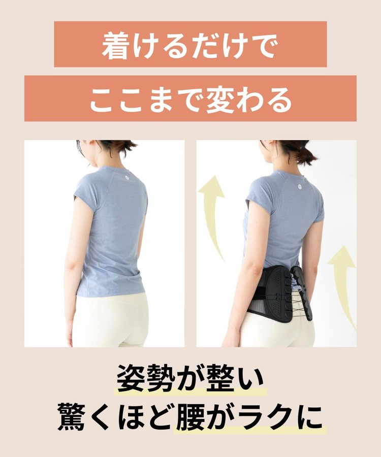 骨盤ベルトでお腹をギュッと引き締めることにより、痩せやすい身体づくりにつながり、ダイエットもサポートします。また、内臓が持ち上げられることで、美肌効果やスタイルのキープにも貢献します。