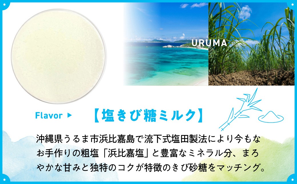 いちご王国栃木県からは宇都宮市産の「とちあいか味」、沖縄県うるま市からは浜比嘉島で流下式塩田製法で今もなお手作りでつくられるまろやかな粗塩「浜比嘉塩」とミネラル分を多く含みまろやかな甘みと独特のコクが特徴のきび砂糖がマッチした「塩きび糖味」、糖度が高くまろやかな酸味と濃厚な甘さを感じられる沖縄県産「マンゴー味」の3種類をセットでお届けします。